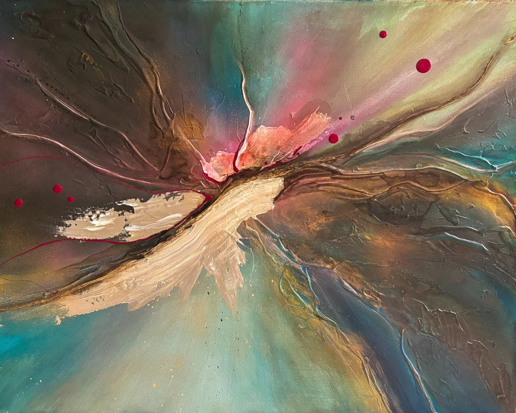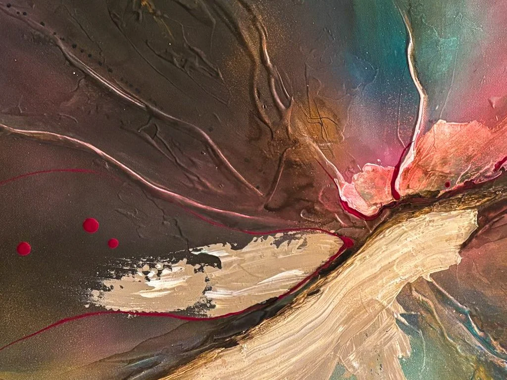 My abstracts are born from emotion — raw, layered, and deeply personal. I often spend weeks reshaping them, adding and peeling back until the work feels true. They carry the weight of thought and feeling, offering an intimate glimpse into my inner world.